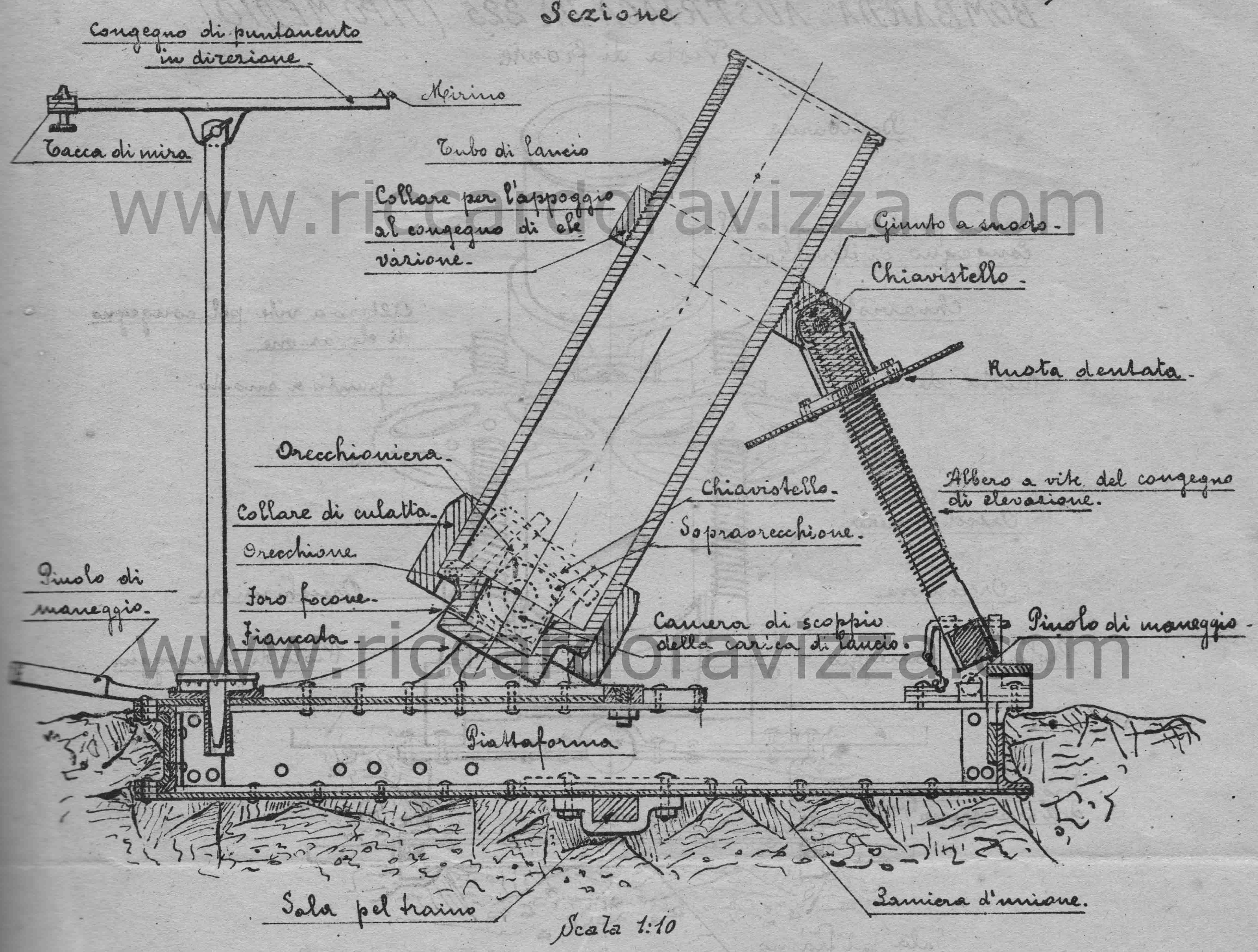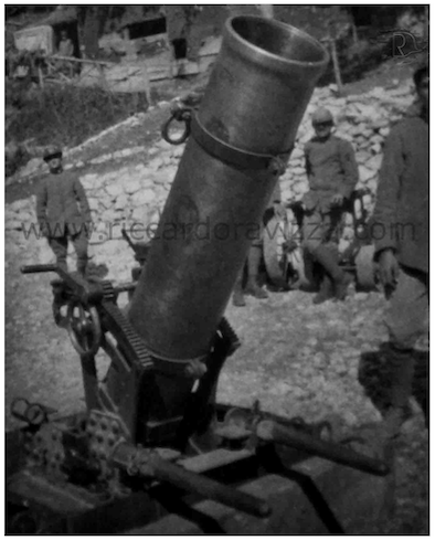 Dopo l'articolo sulle bombarde austriache riporto anche alcune nozioni su quelle italiane da R. Esercito Italiano, Istruzione sul servizio delle bombarde, marzo 1917, Treviso.