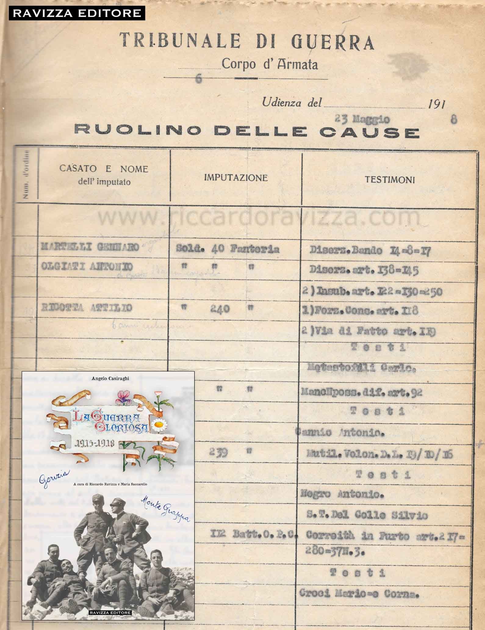 La giustizia militare nelle memorie manoscritte del tenente Angelo Casiraghi.