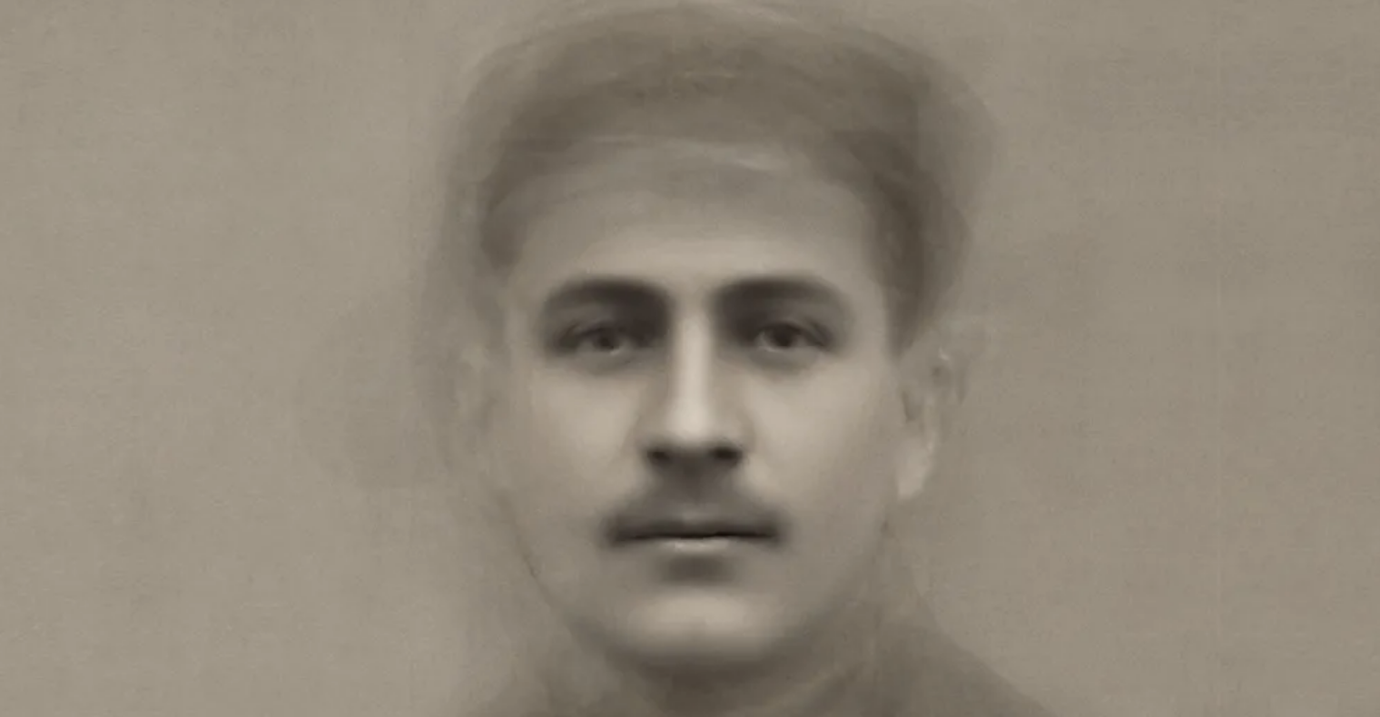 Il volto è stato progettato con 30.000 foto di uomini e donne che hanno vissuto la Grande Guerra, sacrificando la loro vita o parte di essa.
