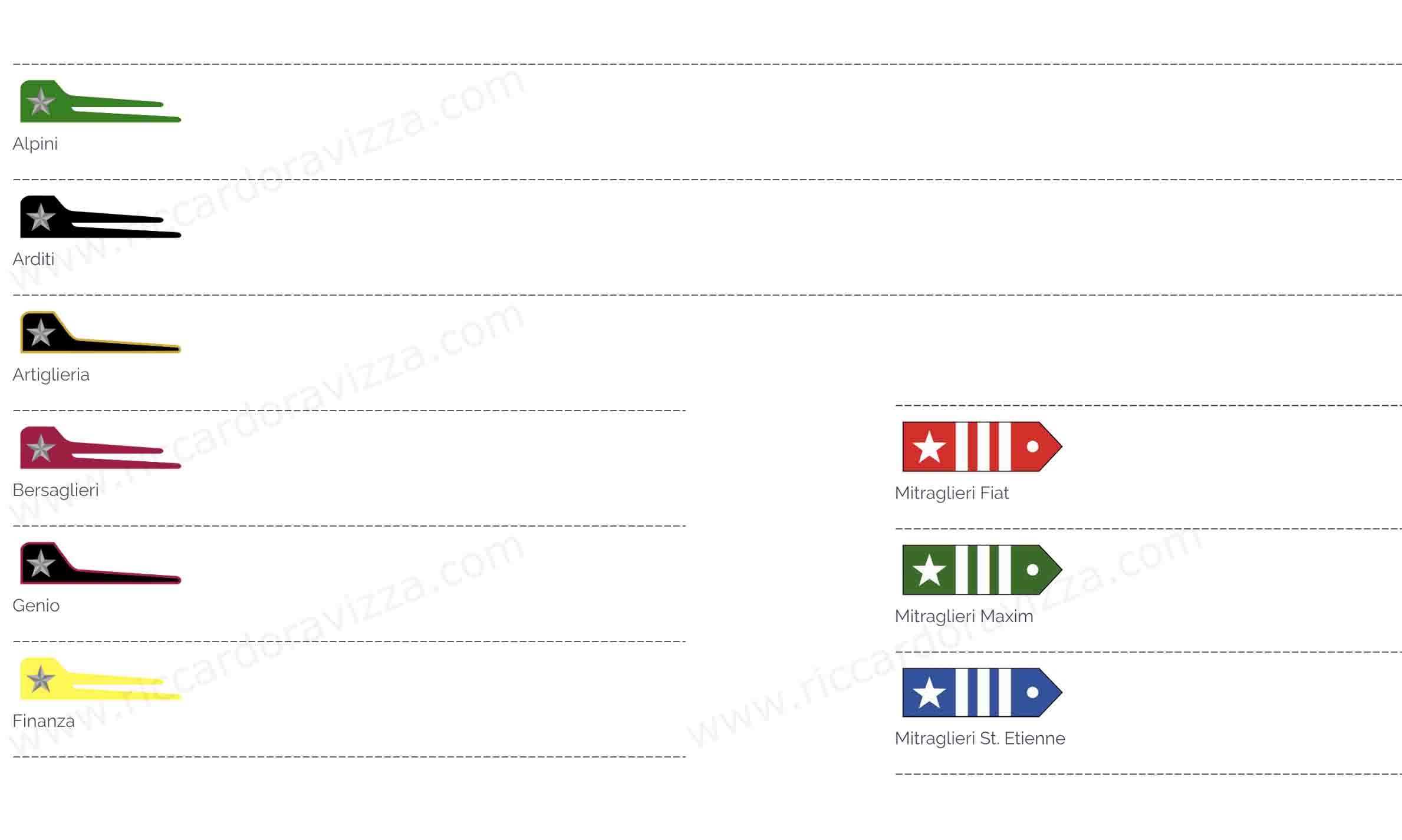 I colori delle mostrine e dei distintivi dei reparti e corpi d'armata non trattati negli atri articoli.